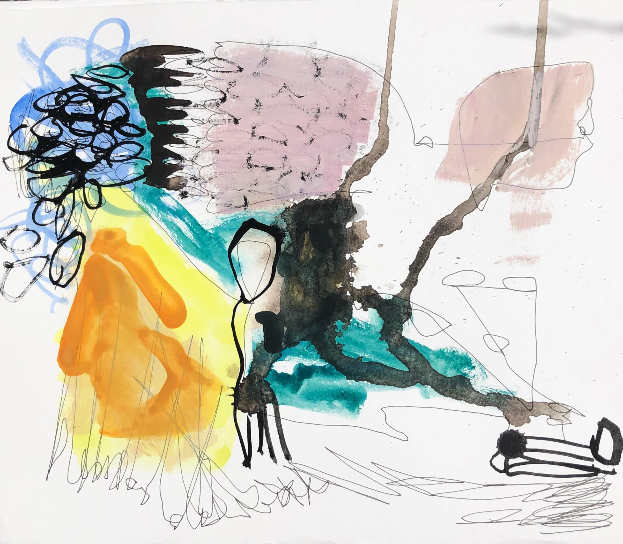 Series of works on paper using gouache, ink, watercolour, oil sticks, pens